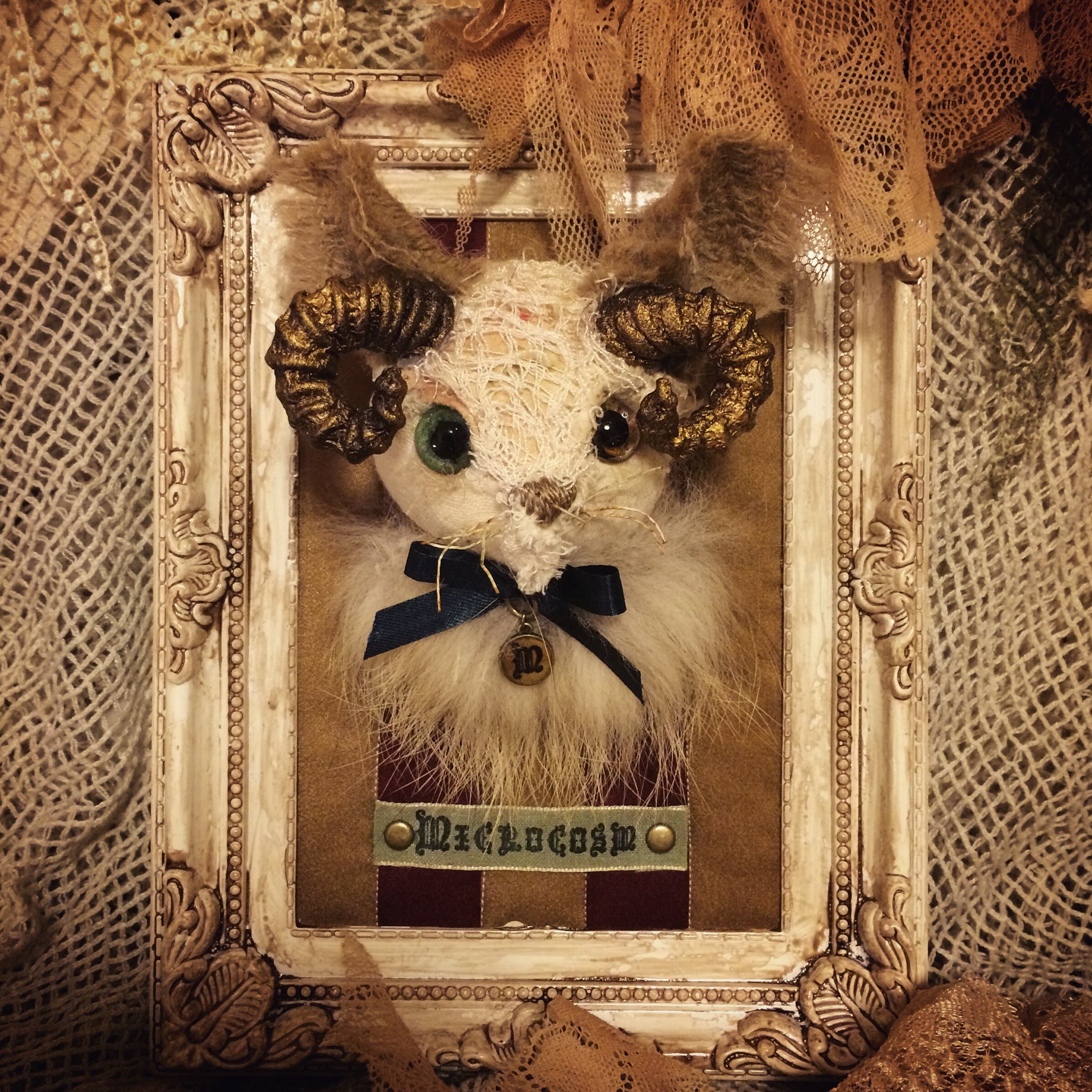 デッドストックの生地、アンティークレース、羊毛などの素材を染色し、ひとつひとつ手作業で縫いあわせた作品となります。
